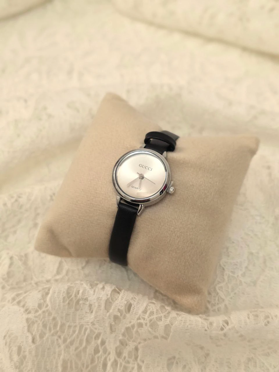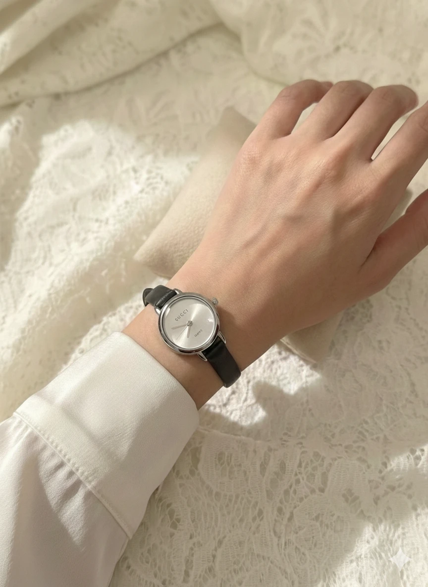 ساعت مچی زنانه گوچی طراحی ظریف و لوکس،اگر به دنبال ساعتی شیک، سبک و کاملاً زنانه هستید، این مدل ساعت مچی GUCCI انتخابی بینظیر برای استایلهای روزمره و رسمی است. صفحه گرد و ساده با رنگ نقرهای براق در کنار بند چرمی مشکی، ترکیبی کلاسیک و جذاب ایجاد کرده که هیچوقت از مد نمیافتد. این ساعت با طراحی مینیمال و ابعاد ظریف، مناسب بانوانی است که به استایلهای ظریف و شیک علاقه دارند
